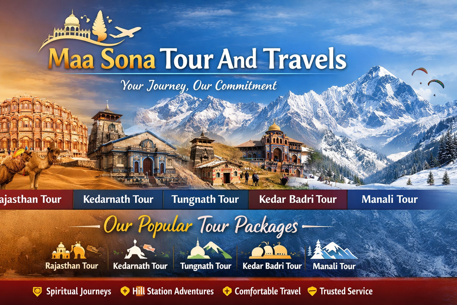 Maa Sona Tour And Travels is a trusted travel and car rental service provider, offering comfortable and reliable transportation for weddings, parties, picnics, doli services, and family tours.